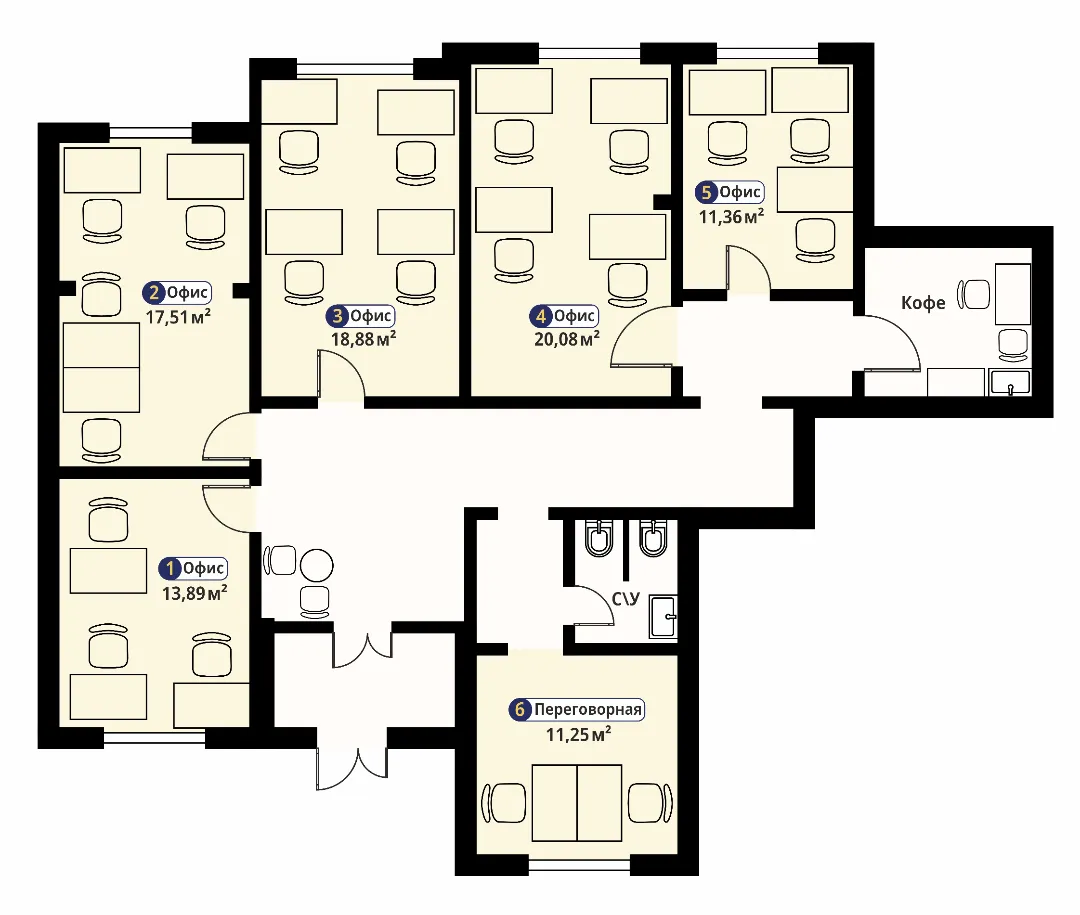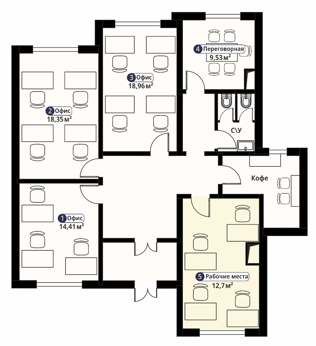 быстрый интернет, эргономичная мебель, стильный дизайн. Здесь вы сможете сосредоточиться на главном – своем бизнесе.